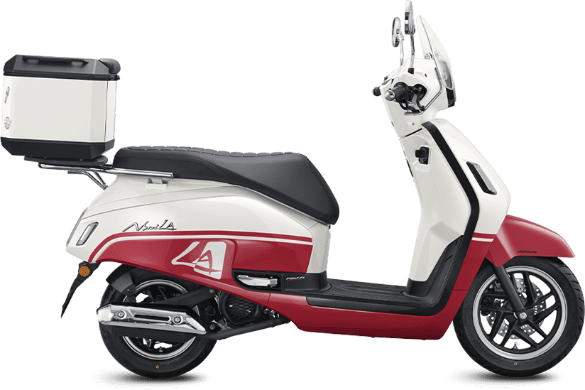 Desain NS125LA menonjol dengan siluet ramping dan lekukan lembut khas retro Eropa, termasuk apron depan yang menampung lampu sein, lampu depan bundar, dan pijakan kaki datar untuk kenyamanan. Dimensi kompak (sekitar 1.850 x 685 x 1.094 mm) membuatnya mudah bermanuver di lalu lintas kota, sementara jok ergonomis dan rel pegangan belakang menambah praktisitas untuk penggunaan harian.